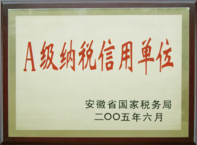 我公司被安徽省国税局评为“A级征税信誉单元”
